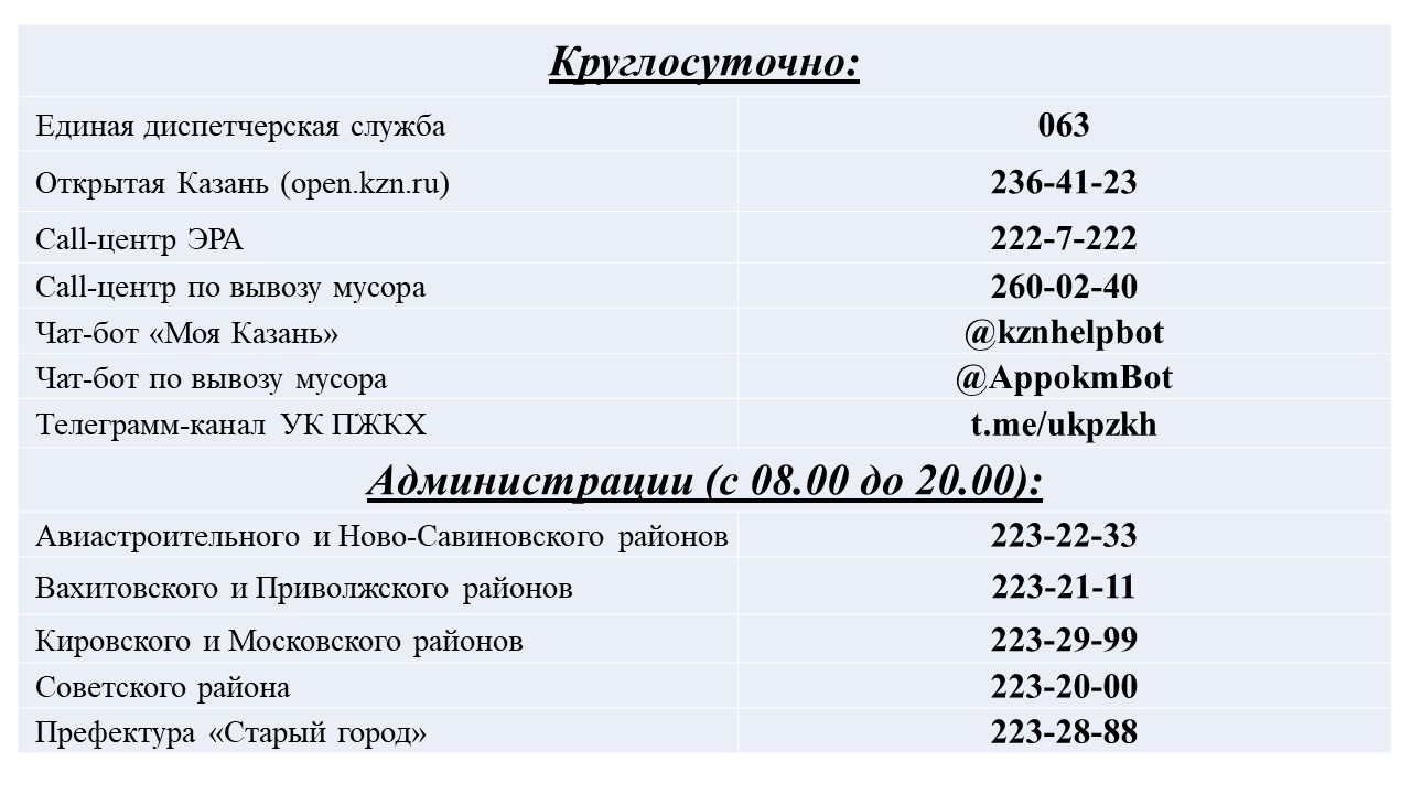 Дежурные службы, ответственные за бесперебойную работу сферы жилищно-коммунального хозяйства